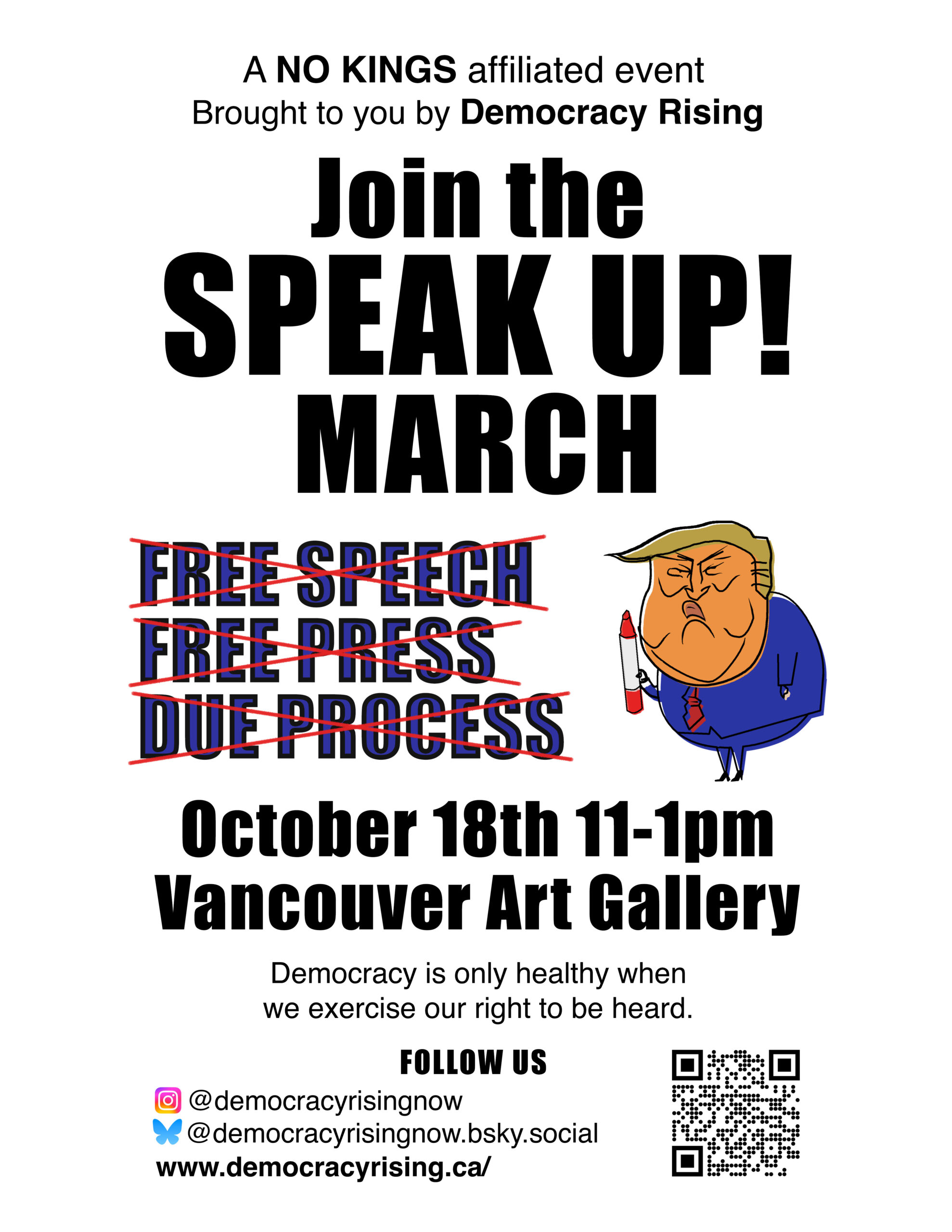 By standing up in Vancouver, we’re showing solidarity and insisting that Canada protects the foundations that let us debate, protest, and fight for issues impacting us like housing, healthcare, and justice.