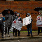 On October 18 in coordination with local and international groups we staged a No Tyrants Day rally and march. The rain took a toll on our signs but not our spirits. We agitated our way from the Art Gallery down Burrard to Jack Poole Plaza, where we joined a large event hosted by a Vancouver group affiliated with the 50501 movement. Thanks to them for their excellent demonstration. Though nothing like the hundreds of thousands marching in US cities, more and more people are sympathetic and feel they need to act. With more volunteers we can grow a solidarity network to to help disuade authoritarians. We advocate and practice non-violence to embolden our country to question the authority of billionaires and maga lookalikes.